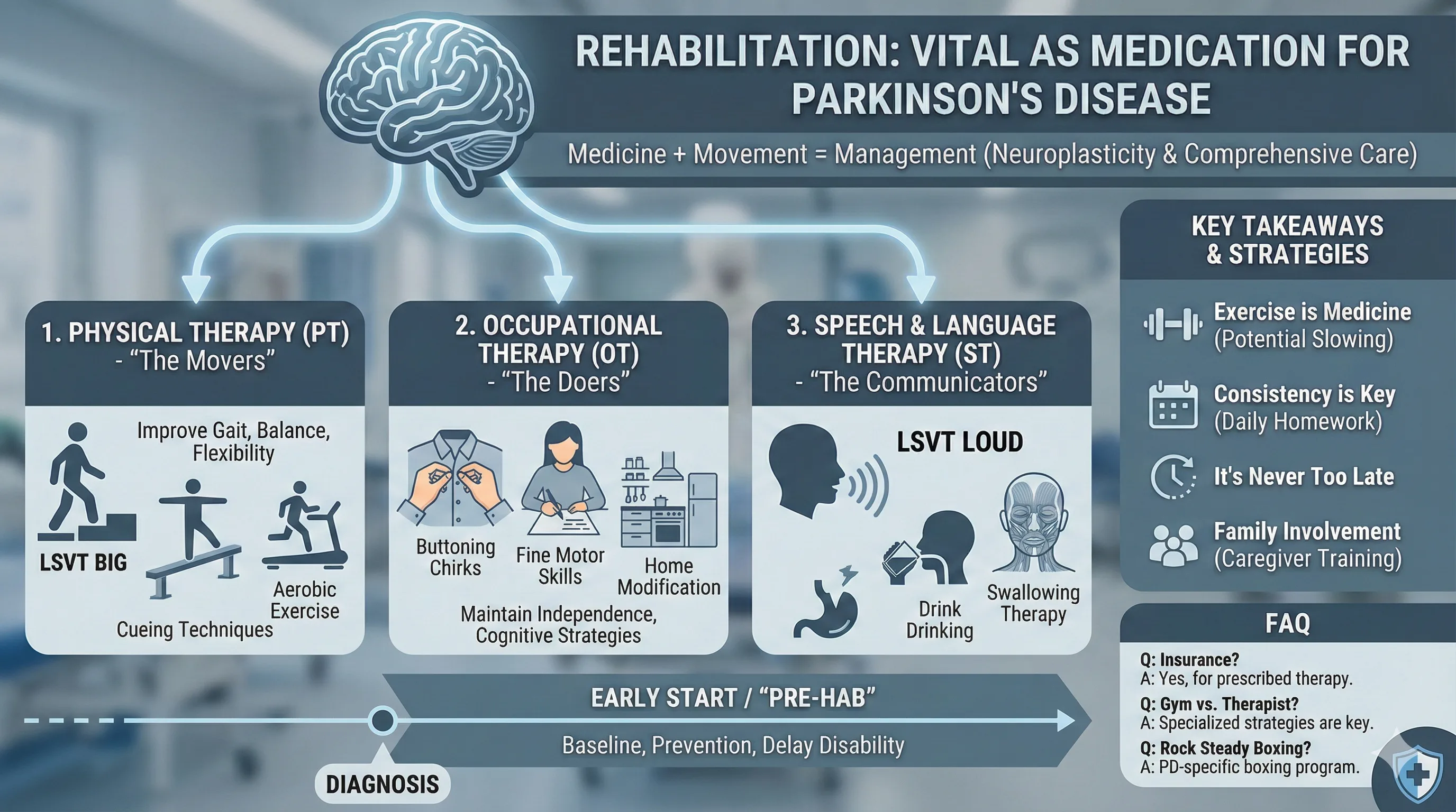 Rehabilitation in Parkinson’s Disease: PT, OT & Speech Therapy Explained