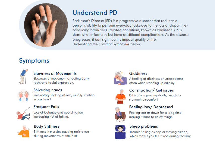 ಏಪ್ರಿಲ್ 11, 2025 ರಿಂದ, ನಾವು ಸಮುದಾಯ ಮಟ್ಟದಲ್ಲಿ ಮತ್ತು ಪಾಲುದಾರ ಆಸ್ಪತ್ರೆಗಳ ಜೊತೆಗೂಡಿ ಭಗವಾನ್ ಮಹಾವೀರ ಜೈನ್ ಆಸ್ಪತ್ರೆ, ಎನ್ಆರ್ಆರ್ ಆಸ್ಪತ್ರೆ ಮತ್ತು ಎಕ್ಸೆಲ್ಕೇರ್ ಆಸ್ಪತ್ರೆ ನಲ್ಲಿ ಆನ್ಲೈನ್ ಮತ್ತು ಸ್ಥಳದಲ್ಲಿ ಉಚಿತ ಪಾರ್ಕಿನ್ಸನ್ ಕಾಯಿಲೆ ತಪಾಸಣಾ ಉತ್ಸವವನ್ನು ಪ್ರಾರಂಭಿಸುತ್ತಿದ್ದೇವೆ.